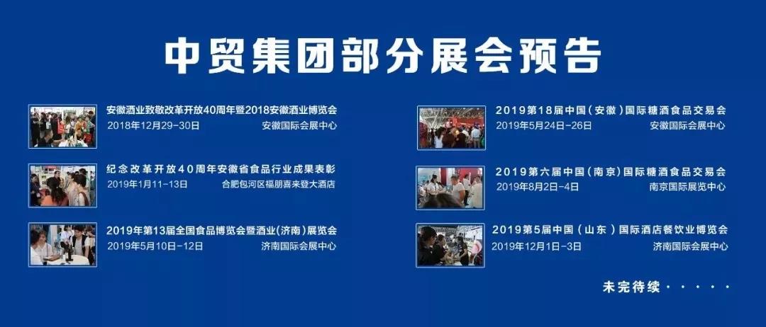 中貿集團每年在全國各地主辦30余場大型博覽會,其中糖酒食品類展會每年在山東、安徽、江蘇、黑龍江等省市舉辦12場以上,是全國區(qū)域性糖酒會巡回辦展的締造者、中國最大的區(qū)域性酒博會及食品展主辦者。中貿集團擁有6萬余家合作的參展商,300萬多家經銷商、采購商數據資源,形成聯動招商、資源互動和共享。在舉辦食品類展會上有著龐大的資源和辦展優(yōu)勢。