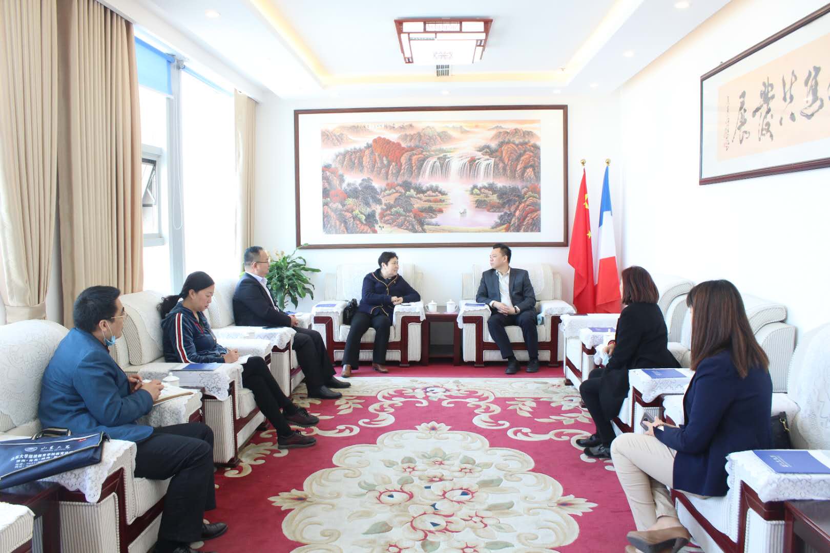 杜磊董事長首先感謝濟(jì)南市貿(mào)促會(huì)對中貿(mào)集團(tuán)發(fā)展長期以來的關(guān)心與支持,并介紹了中貿(mào)在疫情疫情時(shí)期做的各項(xiàng)防疫指標(biāo)工作,堅(jiān)持每日開工前專人負(fù)責(zé)每個(gè)角落全面消毒,員工雙測溫并登記在冊,出入必消毒,開展防疫教育,絲毫不能放松警惕,最大程度保障員工疫情期間人身安全。